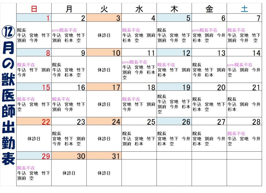 年内は12月29日(日)が最終となりますが、日曜日のため午後休診となりますのでご注意ください。